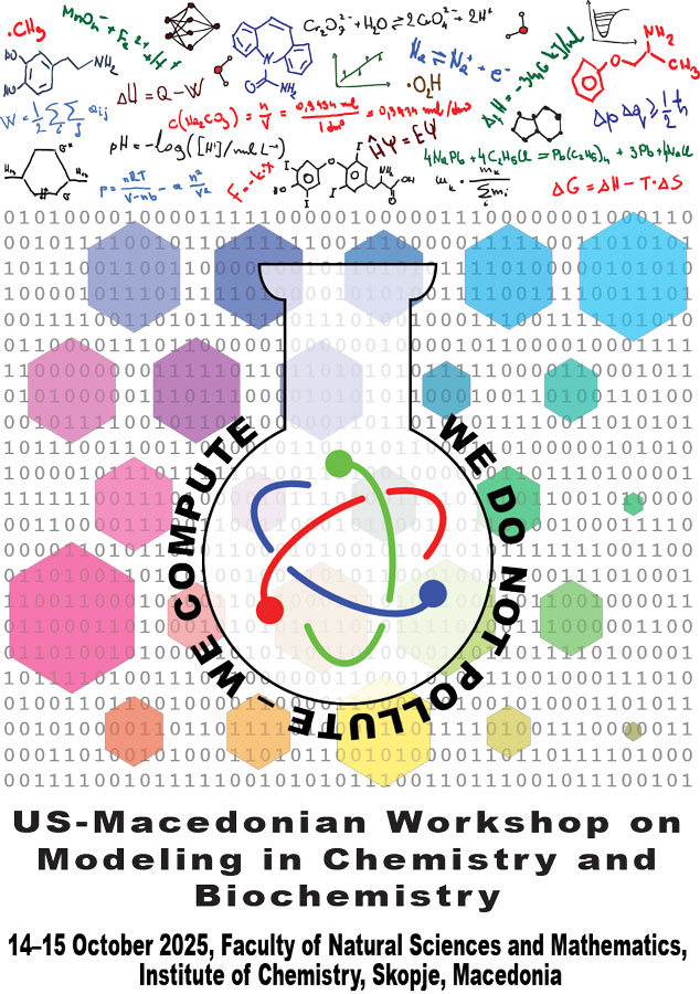 On behalf of the Organizing Committee of the US–Macedonian Workshop on Modeling in Chemistry and Biochemistry, it is our great pleasure to invite you to participate at this event. The Workshop will be held at the Institute of Chemistry (Faculty of Natural Sciences and Mathematics in Skopje) from 14th to 15th of October 2025. Workshop will take a form of WEBINAR. The goal of the Workshop is to introduce the community of chemist and biochemists as well as the students from Macedonia to the existing and exciting trends in the field of modeling of experimental data obtained in chemical and biochemical laboratories.