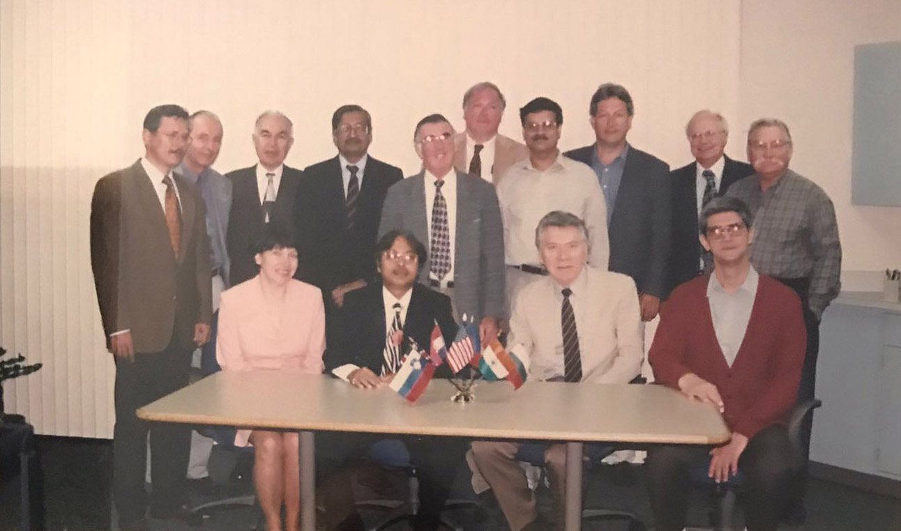Symposium on Applied Mathematical Chemistry (1999), Duluth, Minnesota, USA. Seated (L to R): Sonja Nikolic (Croatia), Subhash Basak (USA, organizer), Milan Randic (USA, organizer) Nenad Trinajstic (Croatia). |
